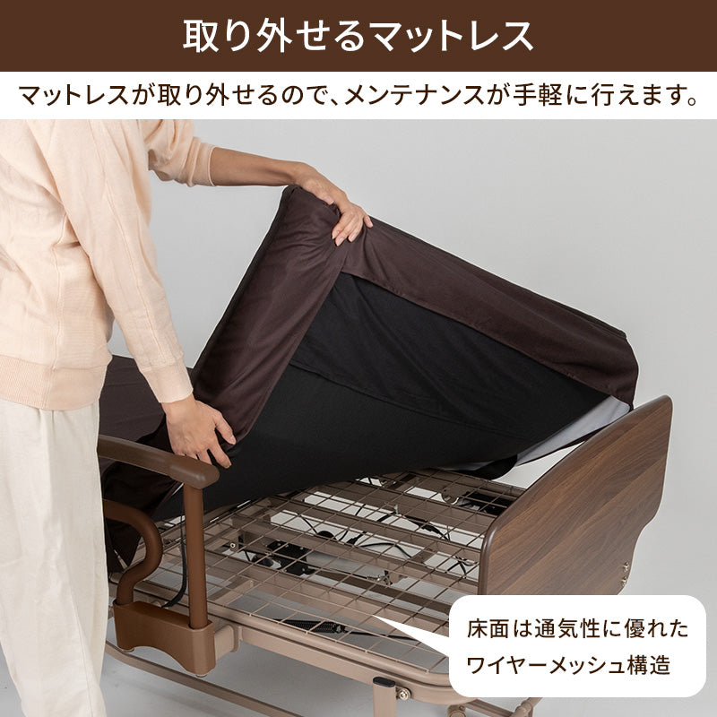 マットレスが取り外せる設計により、メンテナンスが手軽に行えるようになりました。床面は通気性に優れたワイヤーメッシュ構造です。