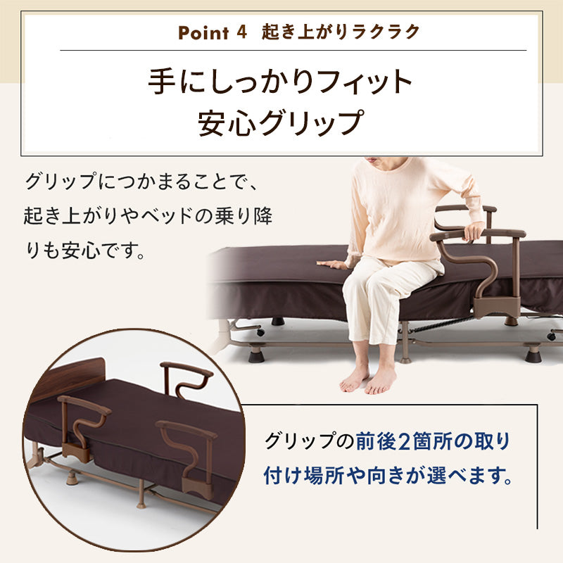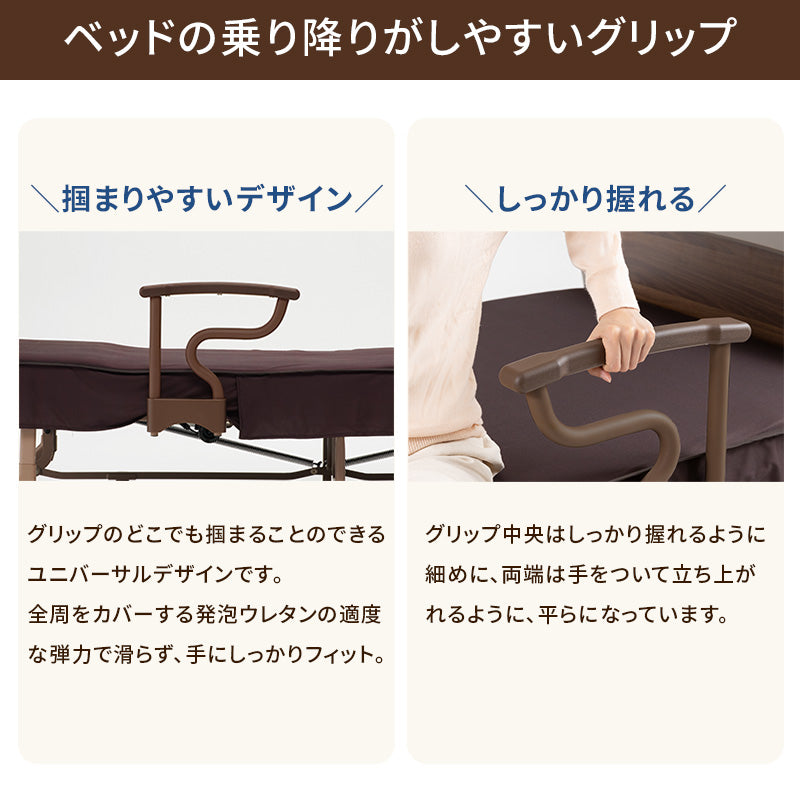 ベッドの乗り降りがしやすいサイドグリップを付属