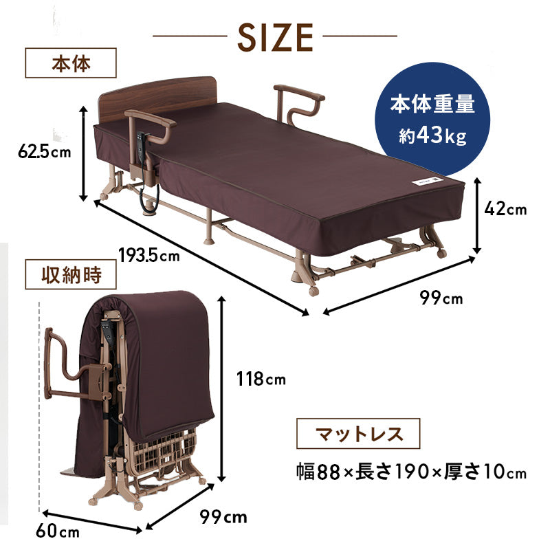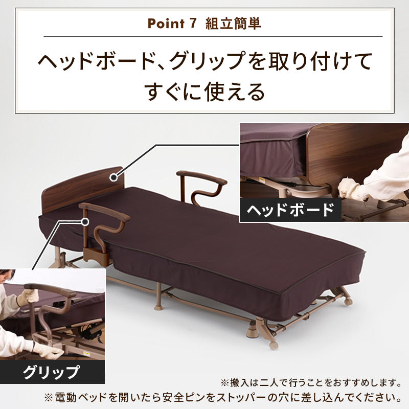 ストッパーなしでしっかり固定 使いやすい、シンプルな電動ベッド