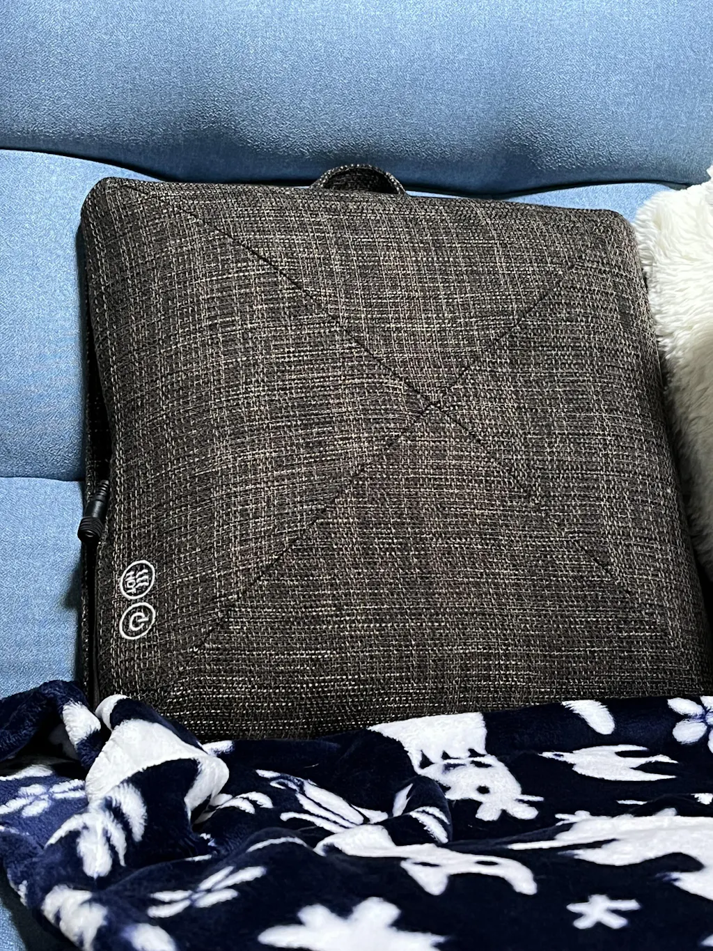 持ち運びに便利な取っ手付き・約15分で自動停止するタイマー付・クッションカバーは取り外して選択可能・毎日15分使用して電気代1ヶ月約4円※料金単価は27円k/Whで算出。