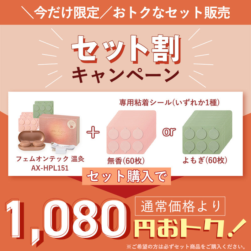 火を使わないお灸、じんわり温めて「血行」をよくするお灸マシン テレビでフェムオンテック温灸が紹介されました お客様の声 お客様の声 速くしっかり熱を届け、ご家庭で簡単に温熱体感ができます お灸の効果1、熱で血行を促進 お灸の効果2、胃腸の働きを活発に。お灸の効果3、リフレッシュ。 お灸の準備は手間がかかって面倒・・・そんな方に お家で手軽に快適セルフ灸、温灸部を気になる部位に貼るだけ! 筋肉のコリをほぐす、神経痛・筋肉痛の痛みの緩解、疲労回復、血行促進、胃腸の働きを活発にする 手の甲、手のひら、ひざ、ひざ下、足首、足裏などにも!持ち運びに便利な充電ケース付き 火を使わないのにしっかり熱が届く、高い熱伝導率をもつ新素材「グラフェン」を使用。 3段階の温度調節で好みに合わせた温度の切替が可能 しっかり固定できる粘着シール付き、無香18枚、よもぎ12枚 パッケージもおしゃれなのでギフトにおすすめ、世代問わずご使用いただけます セット割キャンペーン、セット購入で通常価格より1,080円お得 よくある質問 よくある質問 サイズ 付属品